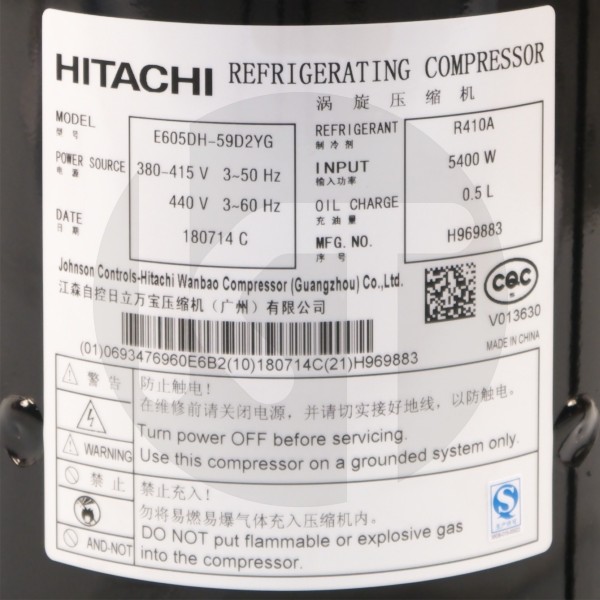 | Модель компрессора | Hitachi E605DH-59D2YG |